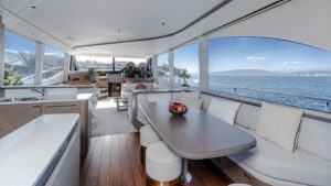 Featuring contemporary, light-filled interiors, a generous salon, and sumptuous cabins, WILJIM V offers an atmosphere of pure relaxation and luxury. The spacious flybridge and inviting sunbathing areas provide the perfect setting to soak in the beauty of the sea and enjoy every moment on the water.