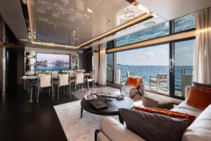 SOLSTICE accommodates up to 8 guests in a spacious and beautifully appointed living area. The owner’s suite offers exceptional comfort, with ample storage, a private dinette, and generous wardrobes transforming the space into a truly impressive retreat.