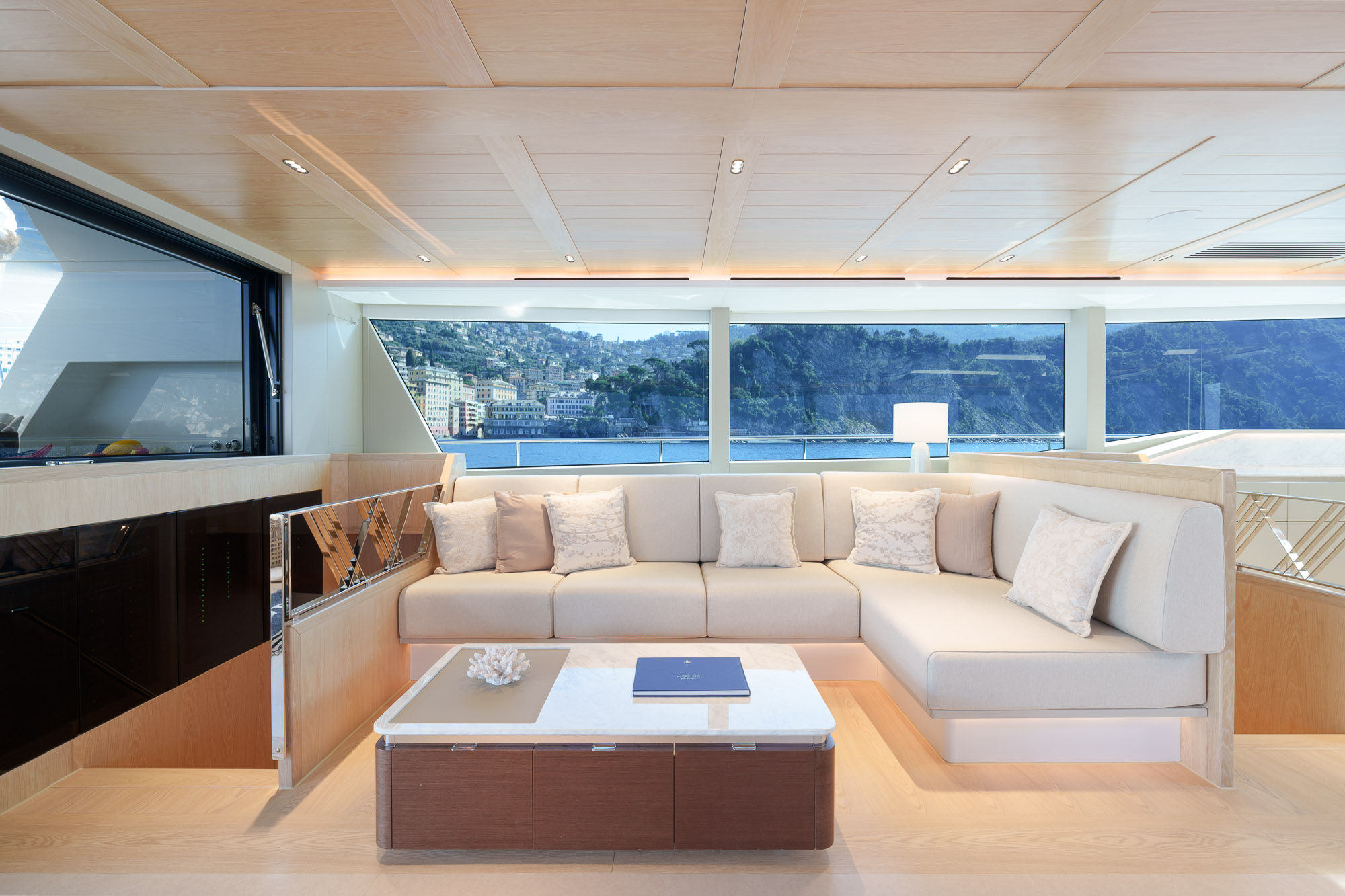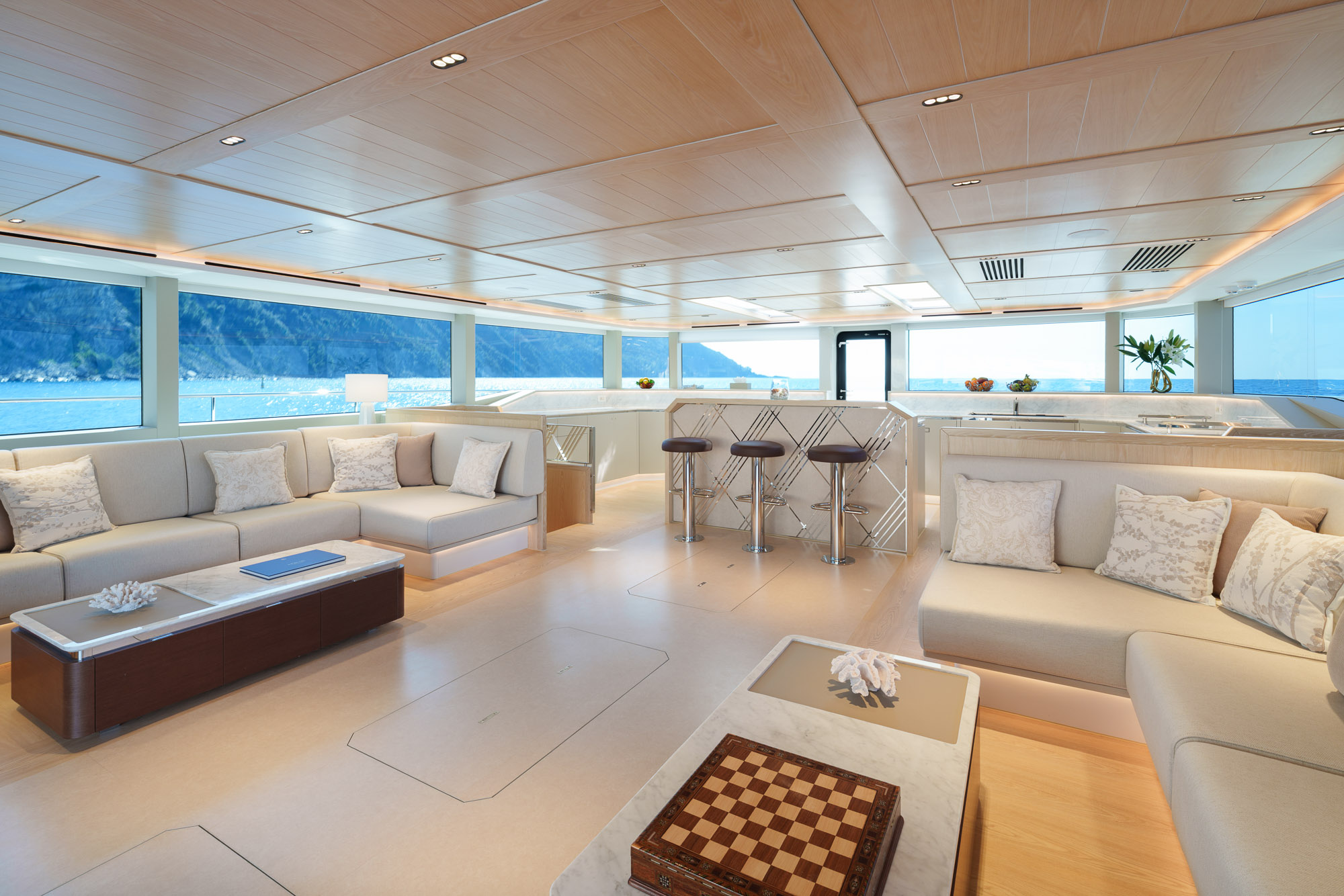 Panoramic windows flooding the saloon with abundant natural light