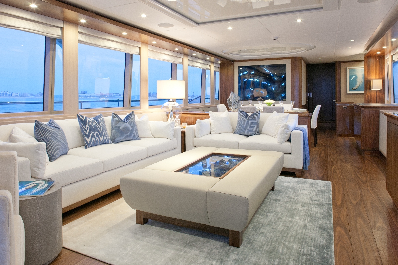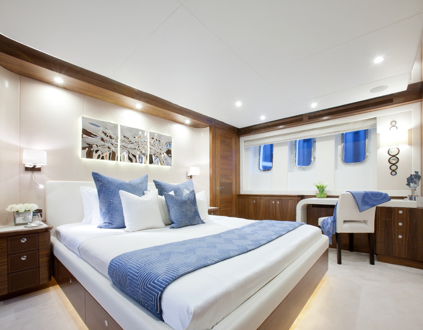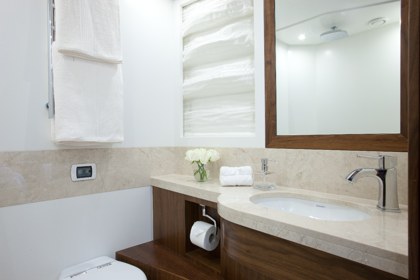 Firefly is the perfect yacht for discerning guests who are looking for both style and substance for their charter.. The impressive saloon, dining room and bar area covers over 40 square meters. Floor to ceiling windows and clever mirrored window frames provide stunning views of the scenery and plenty of natural light. The spacious aft deck is set up for al fresco dining, and is the perfect spot to watch the world go by. Aft, the swim platform lowers into the sea to act as a substantial swimming ladder or can be raised up to offer easy shore access, a great asset for less mobile guests.