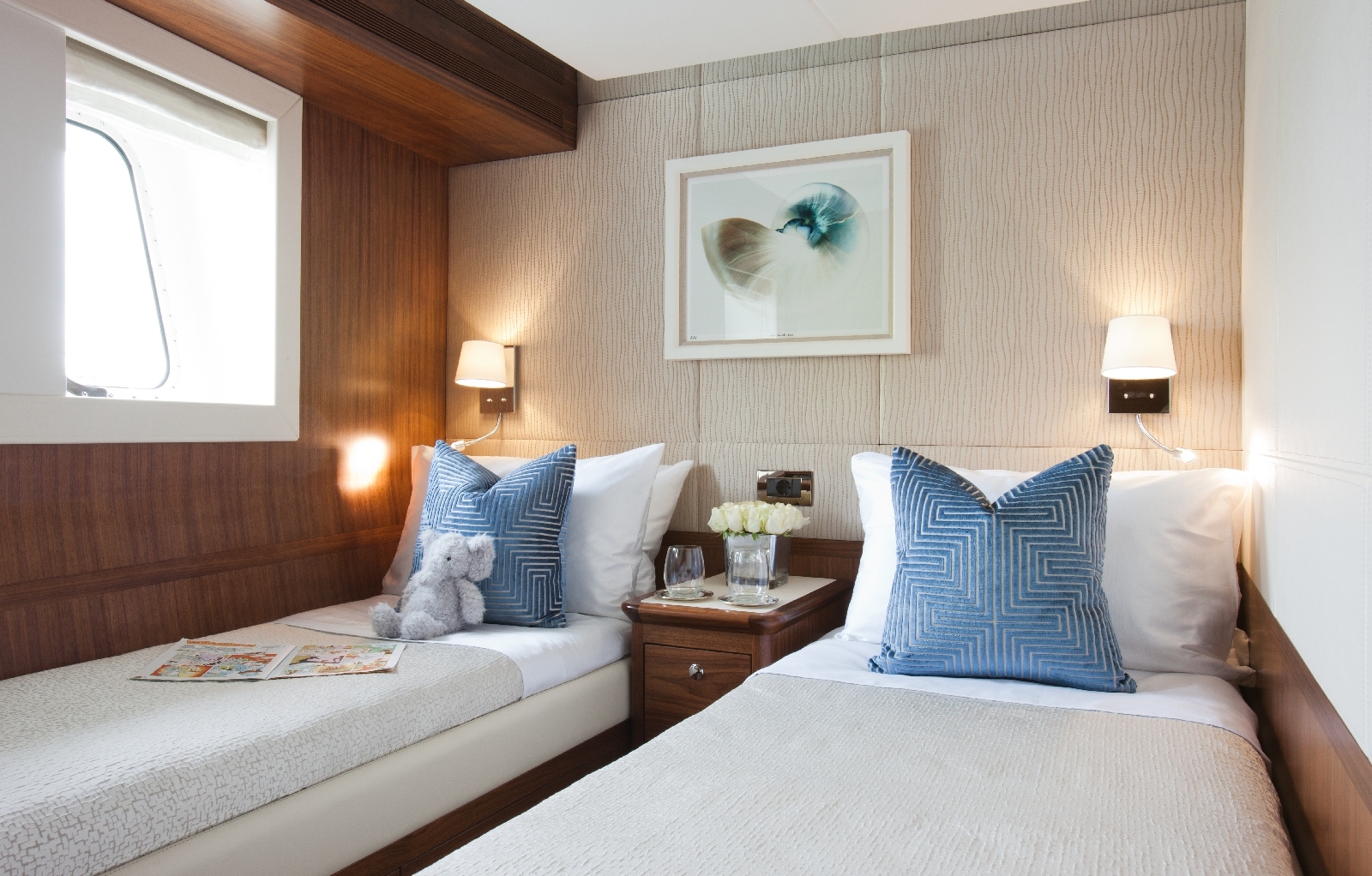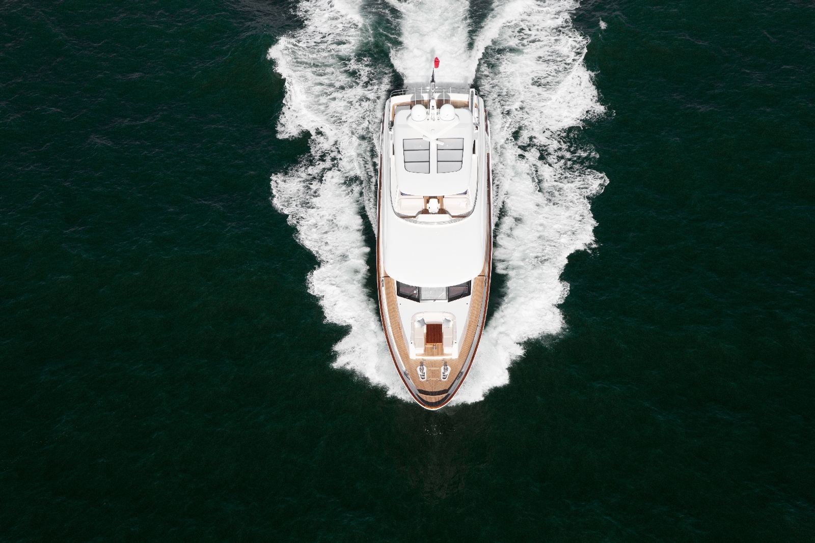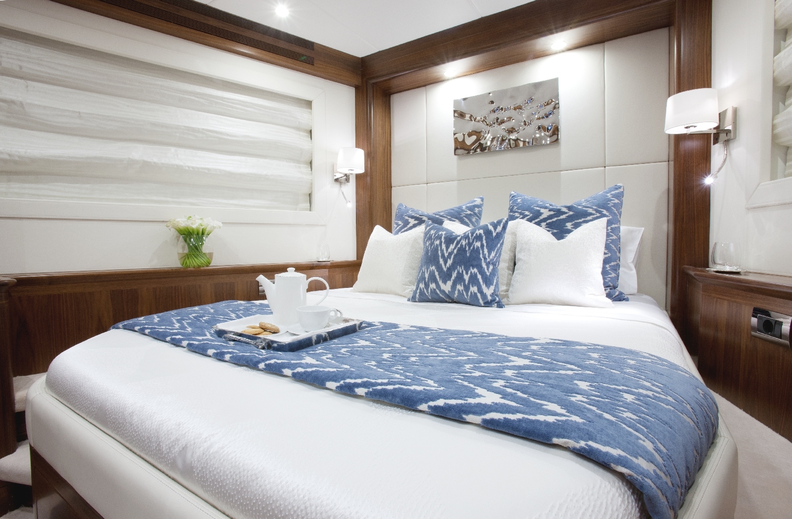 Firefly is the perfect yacht for discerning guests who are looking for both style and substance for their charter.. The impressive saloon, dining room and bar area covers over 40 square meters. Floor to ceiling windows and clever mirrored window frames provide stunning views of the scenery and plenty of natural light. The spacious aft deck is set up for al fresco dining, and is the perfect spot to watch the world go by. Aft, the swim platform lowers into the sea to act as a substantial swimming ladder or can be raised up to offer easy shore access, a great asset for less mobile guests.
