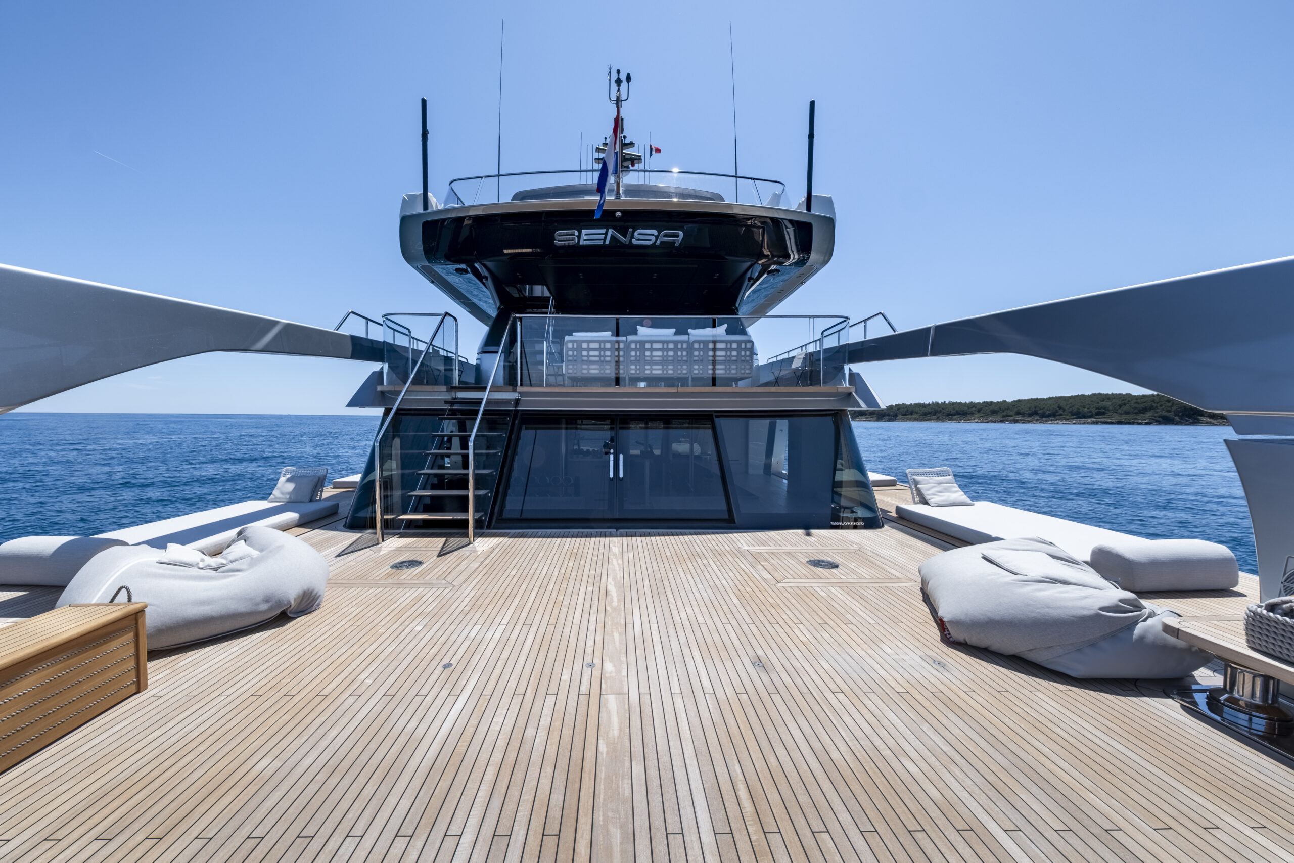 Launched in 2025, SENSA is a stunning Sanlorenzo SX112 that perfectly marries Italian craftsmanship with contemporary design, creating an atmosphere of refined elegance and unparalleled comfort for every guest on board. The yacht features spacious, light-filled interiors and expansive outdoor areas designed for relaxation and entertaining. The swim platform features innovative fold-out sections that transform into sun-soaked lounges, while other areas provide versatile spaces for dining, socializing, or simply enjoying breathtaking panoramic views.
